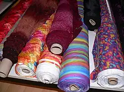 - kapy – tkaniny wykonywane z wykorzystaniem maszyn Jacquarda, z przędzy bawełnianej (wątek) i jedwabnej (osnowa). Tkaniny o wymiarach ok. 1,8 × 2,2 m i wielkoformatowych wzorach, wielowarstwowe. Wzór tworzy barwna osnowa. Stosowane jako narzuty