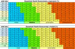 Najczęściej za optymalną u ludzi dorosłych uznaje się 20–25% masy ciała u kobiet i 15–20% masy ciała u mężczyzn. Niższe wartości klasyfikowane są jako niedowaga natomiast wyższe – otyłość[1].