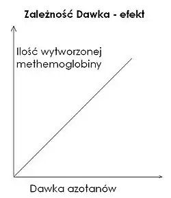 Obserwowanie zależności efektu działania toksycznego od podanej dawki ksenobiotyku jest podstawą badań toksykometrycznych. Jeśli to możliwe, reakcję organizmu na podaną toksynę określa się ilościowo, na podstawie odpowiednich badań. Zależność efektu od dawki może być w takim przypadku przedstawiona za pomocą równania matematycznego: W taki sposób można opisać, na przykład, działanie methemoglobinotwórcze azotanów. Im większa dawka azotanów, tym więcej powstanie methemoglobiny.