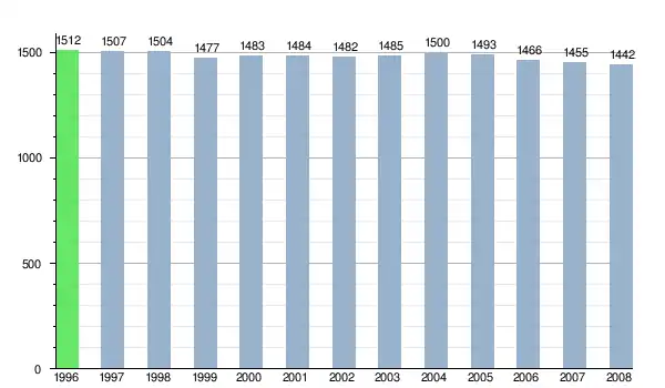 Według danych z dnia 31 grudnia 2012, wieś zamieszkiwało 1371 osób, w tym 695 kobiet i 676 mężczyzn[7].