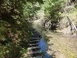 Tomášovská Belá jest całkowicie porośnięta lasem, ale w jej zboczach nad potokiem w wielu miejscach wystają skały i strome wapienne ściany. Przez całą długość doliny prowadzi znakowany szlak turystyczny. Miejscami wiedzie on zboczami doliny w pobliżu potoku, a miejscami bezpośrednio korytem potoku lub jego kamieniskiem zawalonym drzewami, których nikt tutaj nie usuwa. Szlak turystyczny wielokrotnie przekracza potok metalowymi kładkami. W wielu miejscach przejście nad potokiem poprowadzono poziomym kładkami wykonanymi z drewnianych drabin (przez Słowaków nazywanych „stupaczkami”). Przy wysokim stanie wody przejście może być bardzo trudne i trwać znacznie dłużej[2].