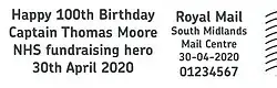 - ↑ Coronavirus: Captain Tom Moore gets Royal Mail birthday postmark, „BBC News”, 27 kwietnia 2020 [dostęp 2020-11-14] (ang.).