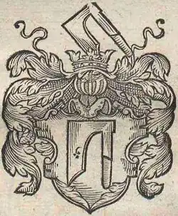 - ↑ Barbara Trelińska: Album armorum nobilium Regni Poloniae XV – XVIII saec. Herby nobilitacji i indygenatów XV – XVIII w. Lublin: 2001, s. 75.