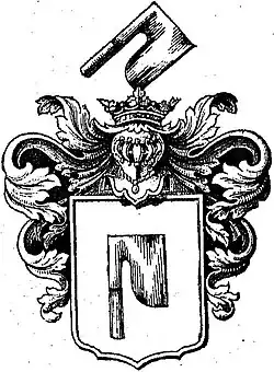- ↑ Tadeusz Gajl: Herbarz polski od średniowiecza do XX wieku. Ponad 4500 herbów szlacheckich 37 tysięcy nazwisk 55 tysięcy rodów. L&L, 2007, s. 359. ISBN 978-83-60597-10-1.