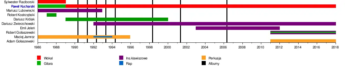 - Paweł Kucharski – śpiew (od 1989 roku, w latach 1986–1989 w zespole jako gitarzysta)