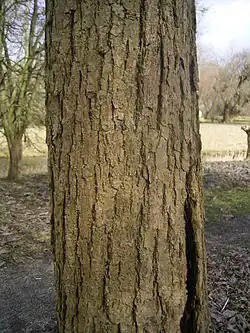 - Kora ma szarą barwę, która się łuszczy pasmami. Jest chropowata[4].