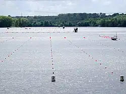 - ↑ Międzynarodowa Federacja Wioślarska i Kajakowa (FISA) została założona w 1892 w Turynie. Ustalono wówczas, że dla regat o mistrzostwo Europy długość toru wodnego musi wynosić minimum 2000 + 100 m wybiegu dla wyhamowania łodzi