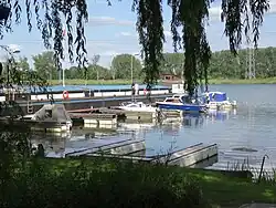 Od strony zachodniej akwen posiada wąską zatokę o długości 250 m, nad którą w 1890 wybudowano łukowy, ceglany most, istniejący w oryginalnej postaci do dnia dzisiejszego.