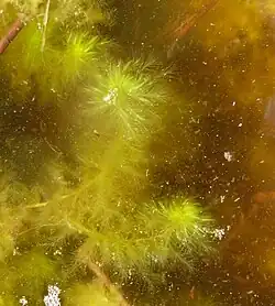 - Zbite bądź luźne, zazwyczaj z czterema gałązkami (czasami trzema, rzadko pięcioma), wtedy dwie gałązki są odstające, dwie zwisające. Gałązki są wydłużone, mają różną długość (do 12 mm u form lądowych, u form wodnych znacznie dłuższe) i mocno zwężają się ku końcom. U form wodnych mogą przypominać końcówkę pędzla lub mokry koci ogon, kiedy zostaną wyjęte z wody[7][6].