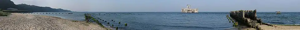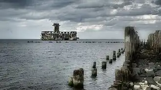 W czasie wojny na Zatoce Gdańskiej zbudowano trzy wieże obserwacyjne (dwie dotrwały do XXI wieku). Wzdłuż nich wytyczono korytarz do zrzutu torped lotniczych przez samoloty z eskadry Luftwaffe wchodzącej w skład ośrodka TWP (na potrzeby eskadry zbudowano pas startowy, istniejący do dziś – tzw. „czarny pas”). Jedną z wież w latach 90. XX wieku zakupił od Urzędu Morskiego prywatny przedsiębiorca, który planował wykorzystać obiekt komercyjnie i założyć w niej restaurację, a następnie przystań z apartamentami[1].