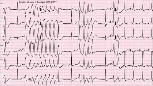 - 1 2 3 4 Dariusz Kozłowski, Wielokształtne częstoskurcze komorowe, trzepotanie i migotanie komór [online], podyplomie.pl [dostęp 2020-04-28].