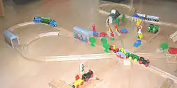 Tory drewniane – system specjalnie wyciętych listewek drewnianych o grubości 1 cm z frezowanymi rowkami, po których mogą toczyć się koła pociągów – zabawek. Tory – o różnej długości i kształtach – można łączyć ze sobą za pomocą specjalnych łączników. Kluczowy element zabawki dla małych dzieci, nawiązujący do zabawy pociągami.