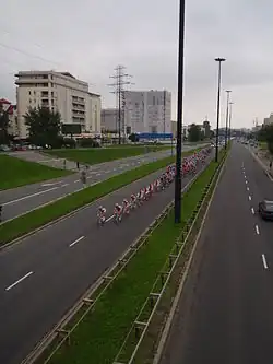 Peleton na ul. Rzymowskiego na warszawskim Służewcu.