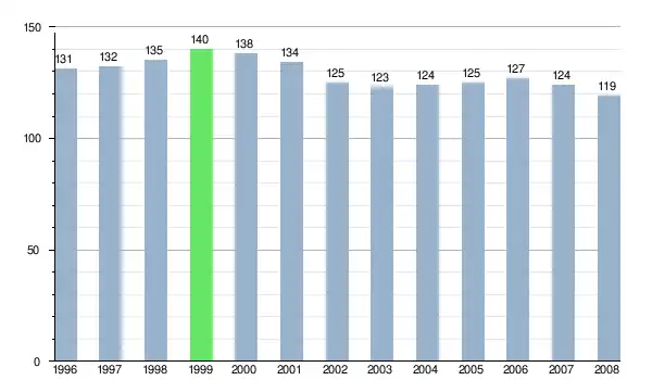 Zmiany liczby ludności w miejscowości Tovarnianska Polianka od 1996 roku[8].