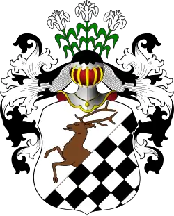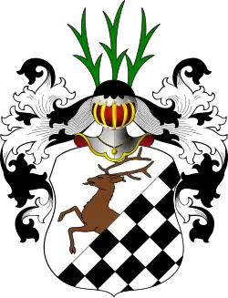 Towucki: Na tarczy dzielonej w skos, w polu górnym, srebrnym, pół jelenia wyskakującego, naturalnego, pole dolne szachowane czarno-srebrno. Klejnot: nad hełmem bez korony trzy ulistnione gałęzie zielone w wachlarz. Labry czarne, podbite srebrem.