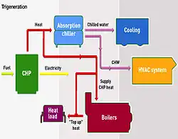 Zastosowanie trójgeneracji umożliwia zamianę energii pierwotnej (np. z gazu ziemnego), na trzy energie wtórne stosowane razem: