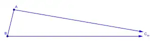 Można go interpretować jako trójkąt, którego trzecim (poza początkami półprostych równoległych i ) wierzchołkiem jest punkt w nieskończoności odpowiadający pękowi[a] promieni równoległych do i