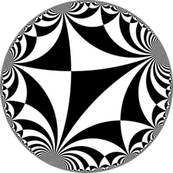 - Trójkąty podwójnie asymptotyczne mają zastosowania graficzne. Można układać z nich parkietarze koła (w modelu konforemnym geometrii hiperbolicznej). Dwa z trzech wierzchołków takiego trójkąta leżą na okręgu będącym brzegiem koła. Każdy z trójkątów parkietarzu, zarówno biały, jak i czarny, ma tę własność.