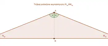 - Trójkąt podwójnie asymptotyczny jest sumą dwóch przystających trójkątów asymptotycznych prostopadłych.