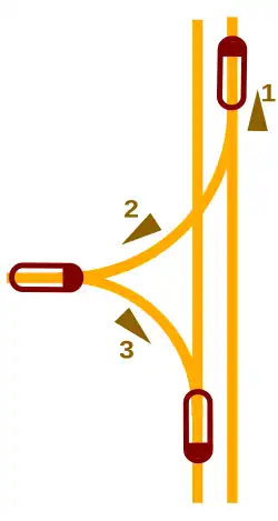 Jeśli trójkąt torowy wykorzystywany jest jako stacja końcowa, to (w odróżnieniu od konfiguracji pętli) dwa z trzech kierunków wybiegających z narożników trójkąta mogą być tylko krótkimi ślepymi torami. Trójkąt zajmuje znacznie mniejszą powierzchnię, niż pętla, jednak dodatkowe manewry podczas zawracania na trójkątach powodują stopniowe zastępowanie ich pętlami.