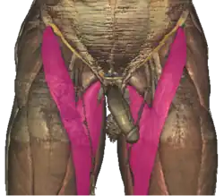 - brzeg przyśrodkowy – brzeg przyśrodkowy mięśnia przywodziciela długiego (łac. musculus adductor longus),