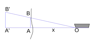 Ponieważ trójkąty i są podobne zachodzi proporcja: skąd