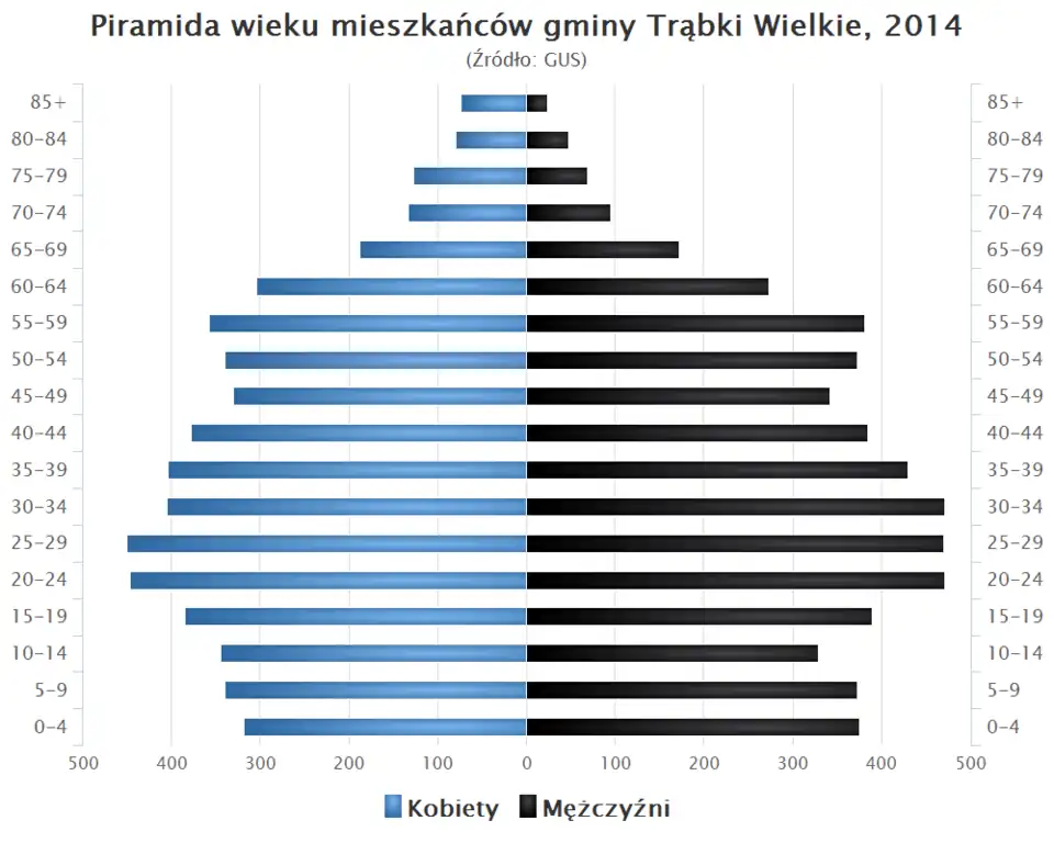 - Piramida wieku mieszkańców gminy Trąbki Wielkie w 2014 roku[1].