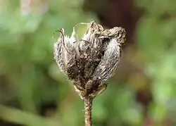 - Kulistawy, odstająco owłosiony strąk długości 7–10 mm.
