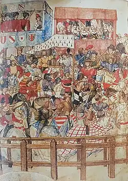 ![]() Karta ze sceną składania przyrzeczenia rycerskiego (k.XXXUIII-XXXIX) | |