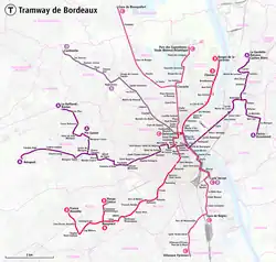 Tramwaje w Bordeaux - sieć tramwajowa w mieście Bordeaux w departamencie Żyronda we Francji. Sieć działa od 21 grudnia 2003 i składa się z trzech linii. Pod względem historycznym jest to druga sieć w mieście, poprzednia działała w latach 1880 - 1958. Obecna sieć zasilana jest z poziomu ziemi[4] na odcinku w ścisłym centrum miasta i jest to pierwsze na świecie zastosowaniem tej technologii[5]. Pozostała część zasilana jest z napowietrznej sieci trakcyjnej.