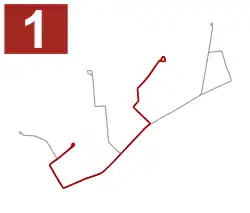 ![]() Tramwaj linii 1 na ulicy 18. novembra iela | |