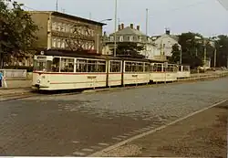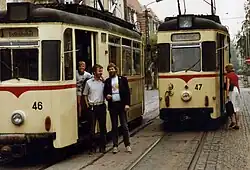 Historyczny tramwaj Gotha T1 z wagonem doczepnym i towarowym | |