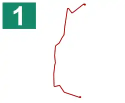 Brīvības iela – Dzelzceļnieku iela – Rīgas iela – Tramvaju tilts – Lielā iela – Krišjāņa Valdemāra iela – Klaipēdas iela – Tukuma iela – Ventas iela – Mirdzas Ķempes iela |