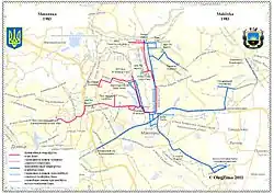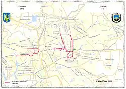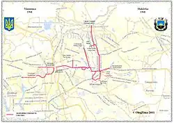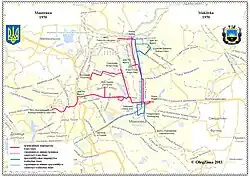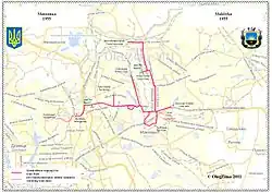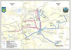 - 2: Makiejewka (centrum) − Makiejewka (centrum) (linia okólna, kursująca po pętli w centrum miasta)