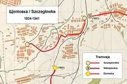 Planowano także dalsze przedłużenie tej linii ze Szczegłowki do Doniecka. Budowę tej linii rozpoczęto we wrześniu 1940. Budowę prowadzono jednocześnie od strony Szczegłowki i Doniecka. Budowę przerwała II wojna światowa i linii tej nigdy nie ukończono. Na początku lat 40. XX w. w Makiejewce było 30 km tras tramwajowych do obsługi których posiadano 42 tramwaje w tym 39 tramwajów pasażerskich, z których codziennie kursowało 25. W czasie okupacji Makiejewki przez Niemców wywieziono w głąb Niemiec element infrastruktury oraz taboru. Rozebrano także całą linię Szczegłowka − Makiejewka oraz spaleniu uległa zajezdni tramwajowa.