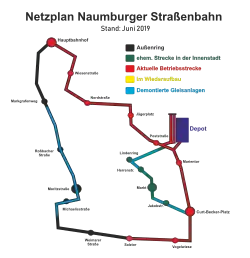 Sieć została zamknięta w 1991 roku i przez trzy następne lata pozostawała nieużywana. Prywatne przedsiębiorstwo Naumburger Straßenbahngesellschaft postawiło sobie za cel uruchomienie tramwaju turystycznego, co udało się osiągnąć w 1994 roku – był to jednak tramwaj konny i obsługiwał jedynie połowę dawnej sieci. W rok później przywrócono zasilanie i uruchomiono tramwaje elektryczne. W latach 1994–2006 ruch odbywał się okazjonalnie[1].