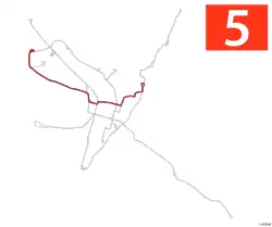 - 5 Alleestr. (Wawrzyniaka) – Turnerstr. (Jagiellońska) – Unterwiek (Jana z Kolna) (kolor niebieski)
