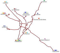 ![]() Sieć torowisk tramwajowych w sierpniu 2024 | |