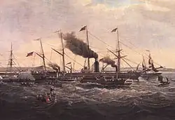 W czasie trwania wojny krymskiej wypróbowano na Atlantyku nowy, żelazny bocznokołowiec „Persia”. Rozwijał prędkość 14 w. i zdobył dla Cunard Line w swej dziewiczej podróży Błękitną Wstęgę osiągając Nowy Jork w 9 dni i 12 godzin. Ten rekord utrzymał do roku 1862[6].