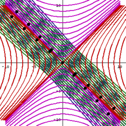 Załóżmy następnie, że naładowana cząstka się porusza, czyli zmieniamy układ współrzędnych na poruszający się względem pierwszego wzdłuż pierwszej osi z prędkością