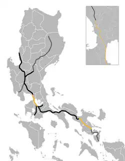 Na Filipinach istnieje[a] 77 km linii kolejowych z czego 49 km to linie normalnotorowe, a 28 km to linie wąskotorowe (rozstaw przylądkowy 1067 mm)[1]. Narodowy przewoźnik to Philippine National Railways[2].