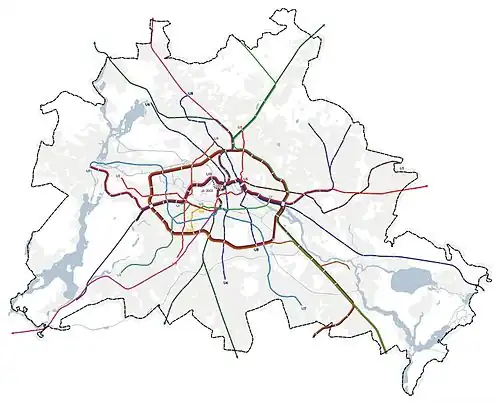 Od lat 60. XIX w. kursowały w Berlinie pociągi podmiejskie i regionalne, z biegiem czasu otrzymywały własne tory, zaś od 1924 zostały przekształcone w elektryczną kolej miejską S-Bahn. Dla kolei S-Bahn zbudowano w latach 1934–1939 tunel północ-południe, krzyżujący się z koleją estakadową na dworcu Friedrichstraße.