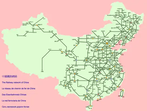 - Mapa sieci kolei chińskich (1). nordling.nu. [zarchiwizowane z tego adresu (2011-09-27)].