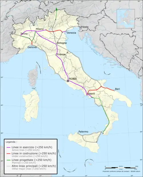 Frecciarossa działa na liniach dużych prędkości Trenitalia. Zatrzymuje się głównie w dużych miastach.