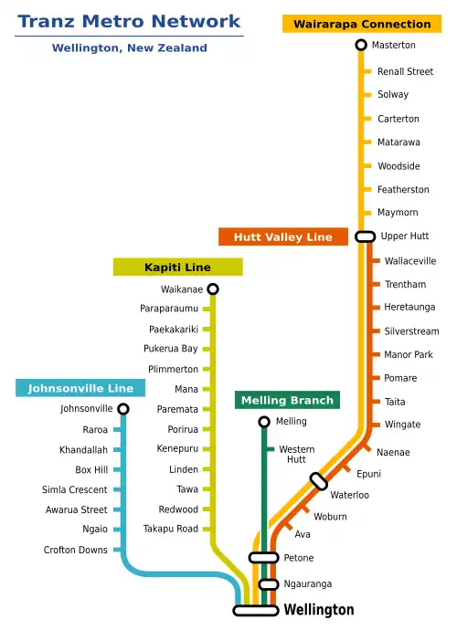 Wellington i Auckland to jedyne miasta w Nowej Zelandii, które posiadają własny system kolei łączący centrum z przedmieściami miasta. System kolejowy używany jest przede wszystkim przez ludzi pracujących w centrum miasta, zaś mieszkających na przedmieściach lub poza jego granicami. Wszystkie linie kolejowe zbiegają się na stacji Wellington (ang. Wellington Railway Station).
