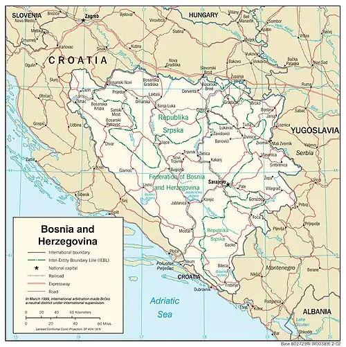 Główne trasy – z północy na południe to Šamac – Sarajevo – Čaplina (Ploče) i z zachodu na wschód – Novi Grad – Doboj – Tuzla – Zvornik[1].