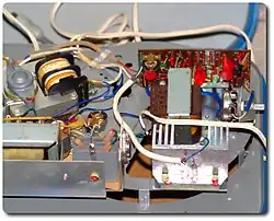 We wzmacniaczu gramofonu zastosowano sześć tranzystorów: 3*TG3A, TG5, TG50, TG70. Stopień końcowy pracuje w klasie A z obciążeniem dławikowym. Głośnik jest włączony równolegle do dławika, co powoduje, że część składowej stałej prądu stopnia końcowego przepływa przez jego cewkę. Punkt pracy tranzystora ustawiany wewnętrznym potencjometrem, brak stabilizacji termicznej punktu pracy i jakiegokolwiek zabezpieczenia (nie ma nawet bezpiecznika topikowego - nie dotyczy wersji "Tranzyston-2", gdzie bezpiecznik znajduje się pod talerzem). W zasilaczu zastosowano prostownik selenowy.