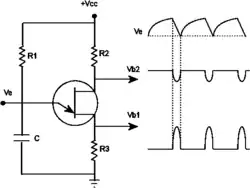 Podczas pracy tranzystora pomiędzy elektrodami B1 i B2 powstaje rezystancja o wartości kilku kiloomów oraz potencjał niepodłączonego emitera, wynoszący zazwyczaj połowę napięcia pomiędzy elektrodami bazowymi. Kiedy napięcie na emiterze jest mniejsze niż napięcie progowe, złącze p-n jest spolaryzowane zaporowo. Gdy wartość napięcia emitera przekroczy napięcie progowe, złącze jest spolaryzowane w kierunku przewodzenia, prąd emitera uzyskuje duże wartości i jednocześnie maleje rezystancja pomiędzy elektrodami bazowymi.