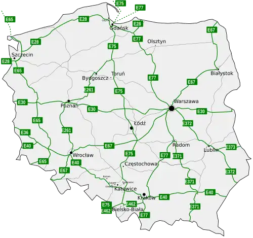 - wydłużono przebieg E67 z Warszawy do państw nadbałtyckich