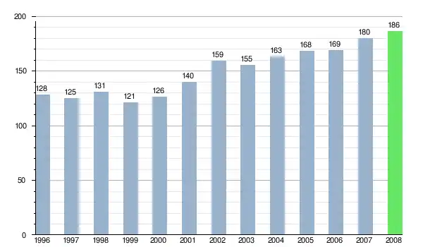 Zmiany liczby ludności w miejscowości Trebejov od 1996 roku[8].